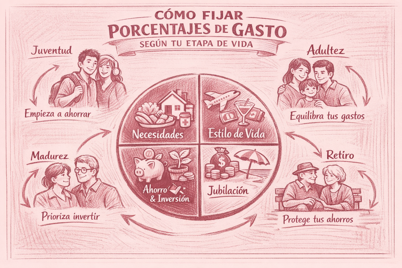 Aprende a fijar porcentajes de gasto según tu etapa de vida. Adapta la regla 50 30 20, distribuye tu sueldo con criterio y construye una planificación financiera personal sólida desde hoy.